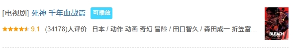 《死神 千年血战篇》上线后热度逐步攀升,不仅各季度的评价多在9分以上,还凭借独特魅力,超越众多热门番剧,强势登顶热度排行榜 TOP1,成为无数漫迷心中的白月光。